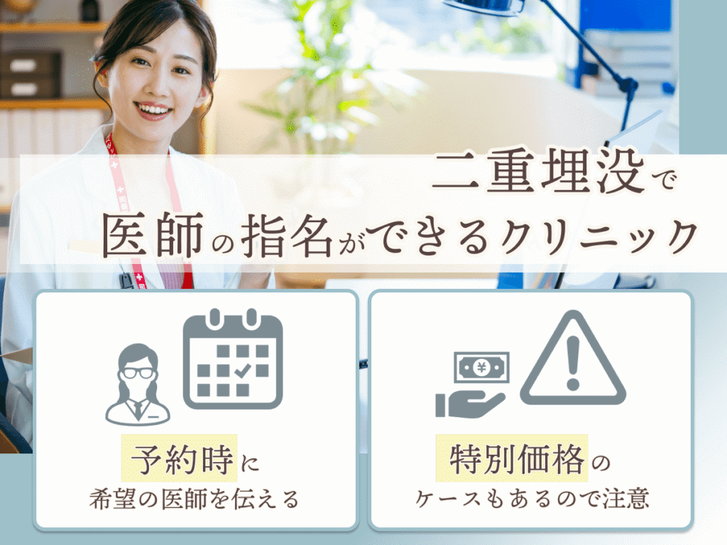 - 二重埋没に特化した14名の厳選医師(上手い先生)を指名可能
